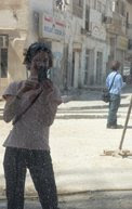 The highway narrowed onto a bridge over a shallow river along dry mud banks. I noticed women kneeling by the water, doing a washing as we sped by at 50 miles an hour. Jaresh pointed out an ancient Hindu fort on the far side of the river. As the road narrowed to two lanes. We entered a congested settlement: cars, autorickshaws, motorcyles, and pedestrians crowding the road and vendors clustered along the side of the road. Wooden-construction carts and tables in shacks, with plastic or corrugated metal roofs offered for sale mounds of bananas and grapes, household goods, and clothing as we sped through the city. As we drove out of the city into the dusty landscape, the acrid smell of smoke and diesel fumes irritated my eyes. Jaresh explained that slash and burn agriculture was common there. The air receding into the distance was hazy from smog or smoke, or both.